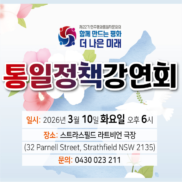 Read moreDetails3월 1일 일요일 오후 3시, 시드니 한인회와 광복회 호주지회가 공동 주관한 제107주년 3·1절 기념식이 시드니 한인회관에서 열렸다. 이날 행사에는 최용준 주시드니 총영사를 비롯해 조기덕·이재경·백승국·윤광홍·오혜영 등 전 한인회장들과, 박은덕 민주평통 호주협의회 회장, 고동식 호한 문화예술 재단 회장, 임혜숙 코윈 호주지부 회장,...