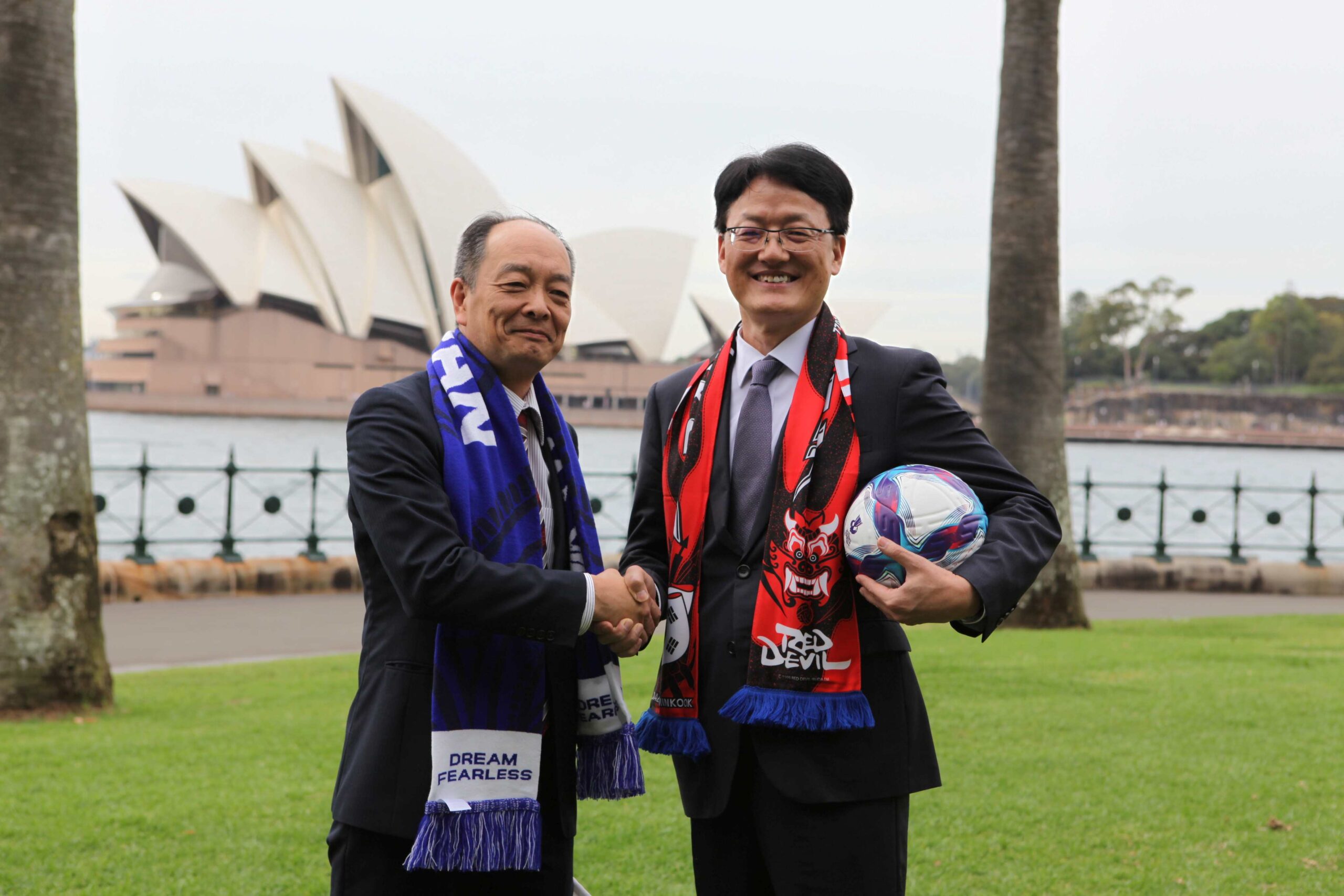 오늘, 화요일 오전 시드니 버랑가루 해안(Barangaroo Foreshore, Sydney)에 위치한 힉슨 로드 리저브(Hickson Road Reserve)에서 대한민국과 일본을 대표하는 외교 수장들이 직접 참여해 다가오는 준결승전에 대한 기대감을 공유했다.