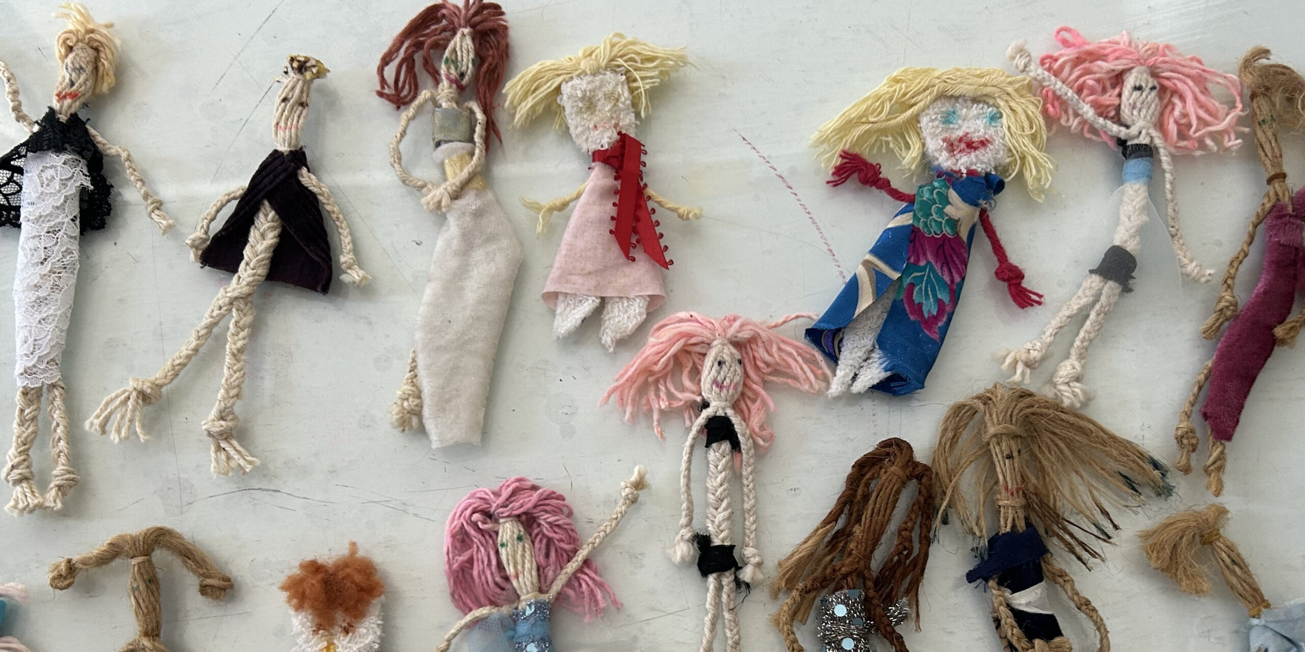 Seon Ae Lee, String People, twine, yarn, fabric scraps, lace, felt, sequins, thread