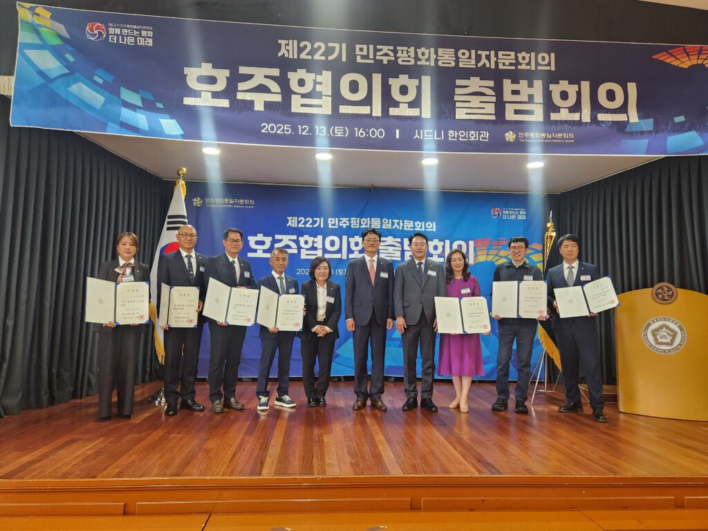 제22기 민주평화통일자문회의 호주협의회 출범식이 12월 13일 시드니 한인회관에서 열렸다. 이날 행사에는 주시드니총영사 최용준, 민주평통 아태지역회의 최분도 부의장, 북한대학원대학교 김동엽 교수, 민주평통 사무처 이오갑 국장, 시드니한인회 형주백 회장을 비롯해 멜번·브리즈번·퍼스 등 각지에서 자문위원들이 대거 참석했다.