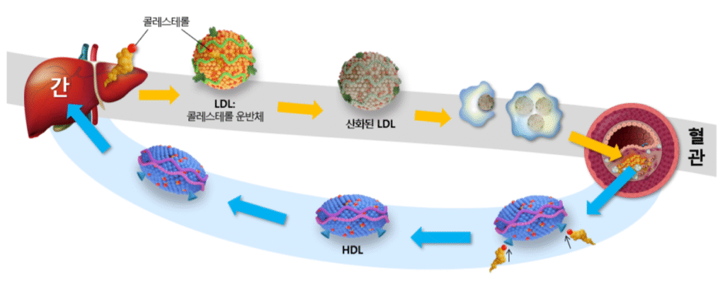 콜레스테롤은 세포막과 성호르몬을 만들고 비타민D를 합성하는 데 꼭 필요한 성분으로 ‘LDL’이라는 특별한 운반체에 실려 조직과 세포에 전달된다. 그런데, LDL에 실린 콜레스테롤이 필요한 곳에 가지 못하고 혈관 내막에 쌓여 덩어리를 이루면, 혈관을 좁아지거나 막히게 만들어 건강에 치명적인 질병을 일으킬 수 있다.