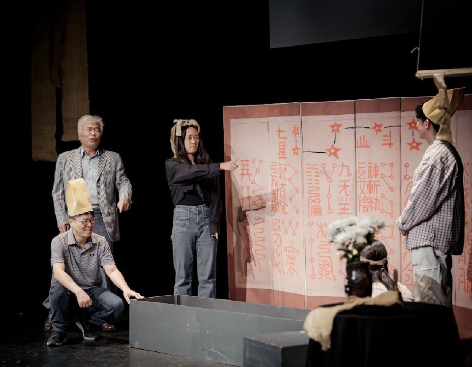 눈물 글썽이다가 웃음 터지기를 몇 번 되풀이하다 보니 어느새 연극이 주는 흥에 젖었다. 앞에서 세 번째 줄에 앉았는데 앞자리에 남자가 적어서 유산 놓고 싸우는 자녀 중 장남 역할이 주어졌다. 뒤로 빼지 않고 시키는 대로 하리라 결심하고 무대로 나갔다. 상주 굴건을 쓰고 관을 둘러싸고 형제 간에 유산 다툼을 하는 장면에서 몸짓 연기를 했다. 대사는 유순웅 배우가 하기에 말하는 시늉만 하면 됐다. 무대에서 직접 경험하는 연극은 실제 삶 못지 않게 치열했다. 몸과 몸, 말과 말이 좁은 무대에서 부딪히며 사람과 세상의 진실을 그려냈다.
