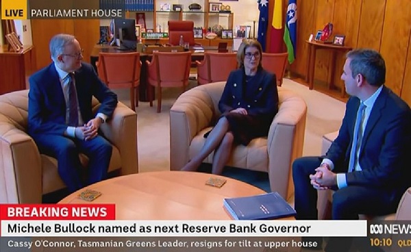 지난 7월 14일(금) 알바니스(Anthony Albanese) 총리와 찰머스(Jim Chalmers) 재무장관은 총리 집무실에서 블록 부총재를 만나 RBA 총재직에 대한 수락 의사를 확인한 뒤 그녀를 RBA 차기 총재로 선임했다고 발표했다.