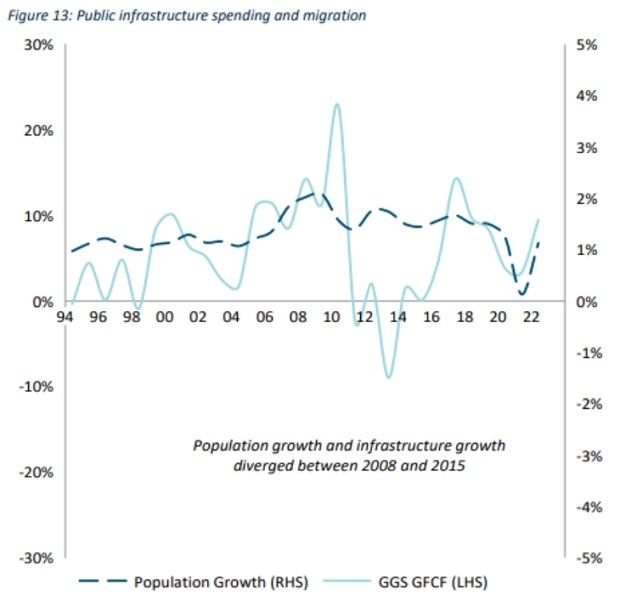 보고서는 “2006년에서 09년, 2016년에서 19년과 같이 순 해외이주(net overseas migration. NOM)가 많았던 기간 동안, 일부 지역에서 인프라와 기타 지원이 인구 증가에 맞춰 발전하지 못함으로써 도시 혼잡에 대한 우려가 커졌다. 이로 인해 이주 프로그램에 대한 지지가 감소했다”고 지적했다.