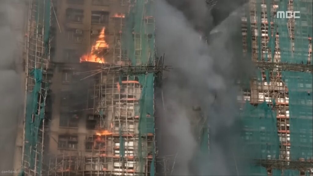 고층 건물 외벽을 빠르게 감싸 올라가는 대나무 비계 작업자들의 모습은 홍콩 도심에서 흔히 볼 수 있는 장면이다. 특히 이번 사고가 발생한 타이포(Tai Po) 지역 왕푹코트(Wang Fuk Court) 주택단지에서도 대나무 비계와 녹색 보호망이 함께 설치돼 있었다.
